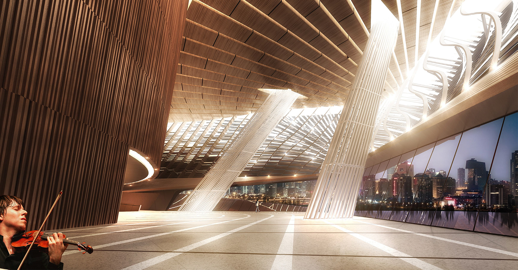 中國(guó)傳統(tǒng)文化“天人合一”的自然觀與社會(huì)觀,以“山、水”的自然美來(lái)再現(xiàn)“智者樂(lè)山、仁者樂(lè)水”的儒家美學(xué)觀。建筑設(shè)計(jì)中將中軸景觀河畔景觀設(shè)計(jì)與建筑設(shè)計(jì)相融合,以此與整個(gè)大學(xué)城的城市景觀相融合,達(dá)到建筑與景觀一體化設(shè)計(jì)的結(jié)果,提高了整個(gè)園區(qū)的品質(zhì)與園區(qū)文化。