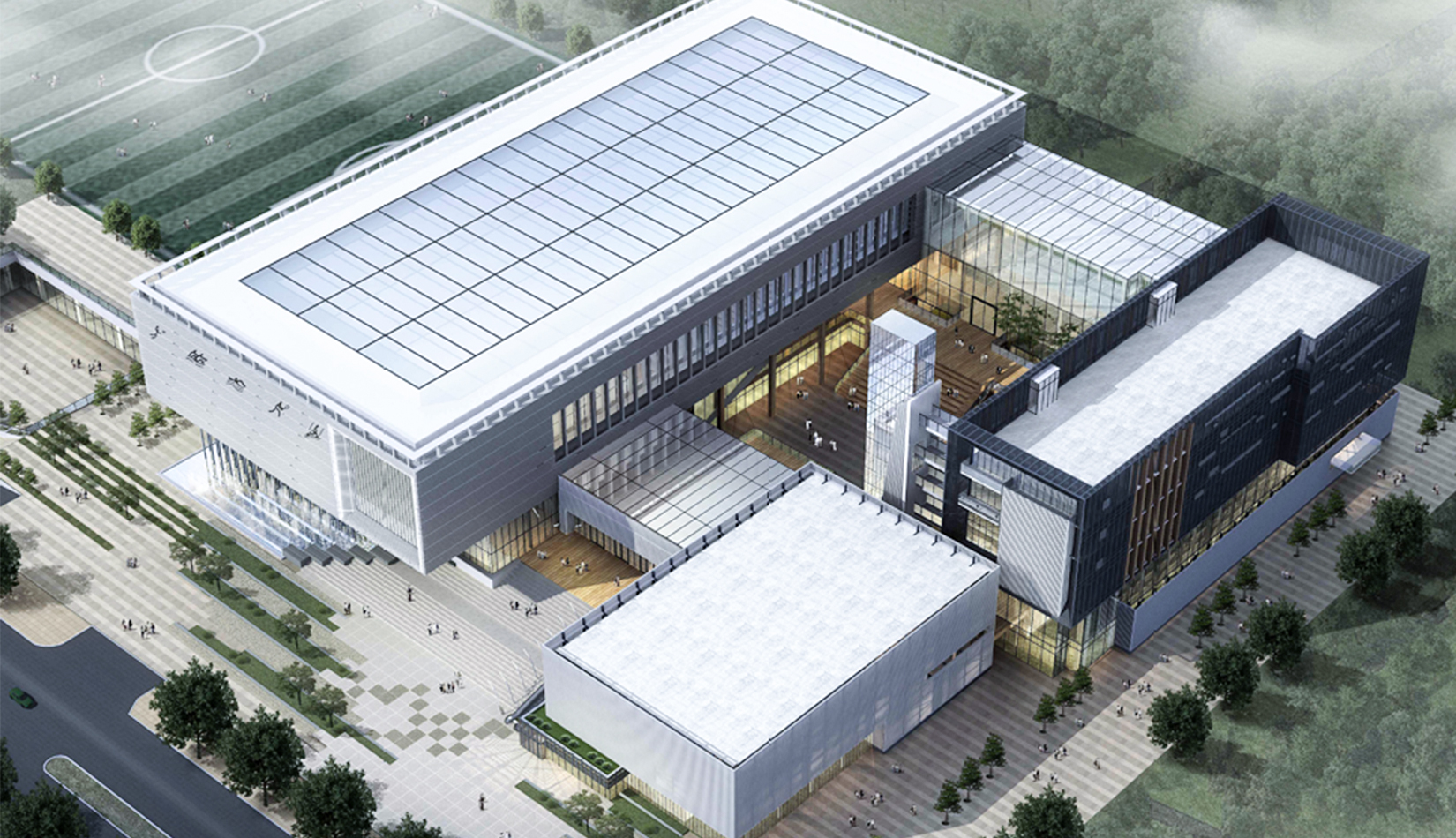 改造舊建筑加以利用,樹立舊建筑改造升級的典范尊重場地文化記憶,被改造建筑成為文化的載體,服務于文化活動版塊。與新建體育健身板塊形成“左文右武”的格局。建筑邏輯、景觀邏輯、文化邏輯、新技術、新材料、立體綠化、生態(tài)空間、景觀與建筑的有機結(jié)合。