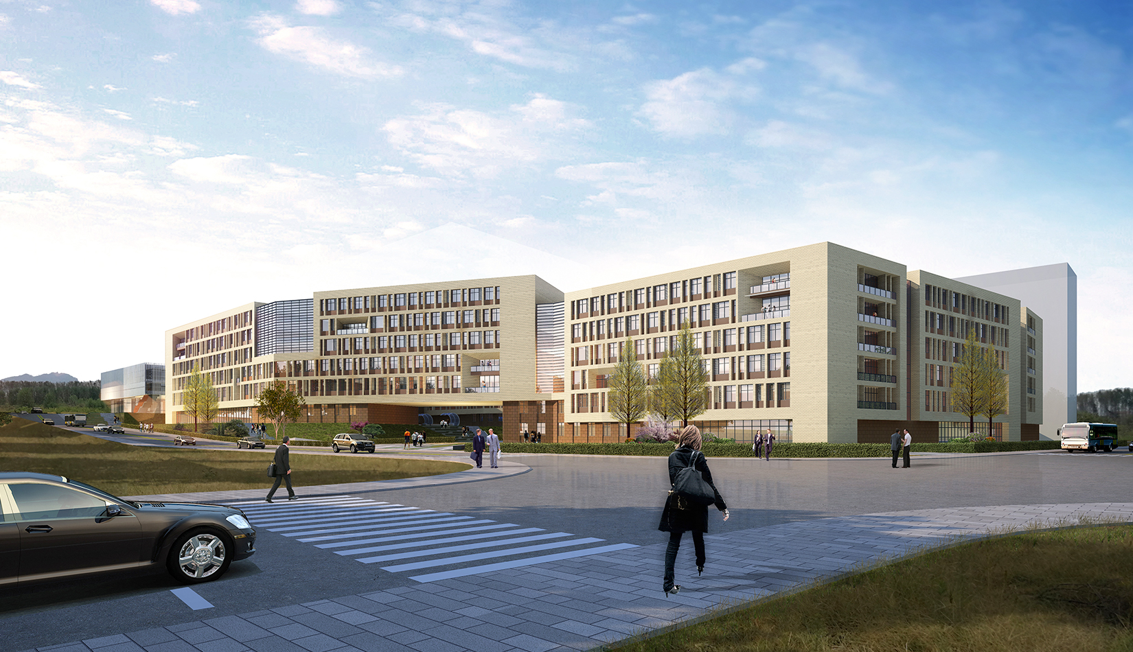 中國海洋大學(xué)老校區(qū)建筑為歐式建筑,采用紅瓦坡頂及淡黃色墻面,另有深棕線腳加以點綴。為傳承歷史文脈,強調(diào)文化特色,方案順應(yīng)西區(qū)生活區(qū)院落圍合布局,立面風(fēng)格設(shè)計為歐式風(fēng)格,結(jié)合屋頂、墻面及基座等細節(jié)設(shè)計,整體風(fēng)格與海大老建筑協(xié)調(diào)統(tǒng)一。主要出入口處,提取海大典型建筑元素,設(shè)計大氣的入口大門形象,與海大老校區(qū)建筑遙相呼應(yīng)。
