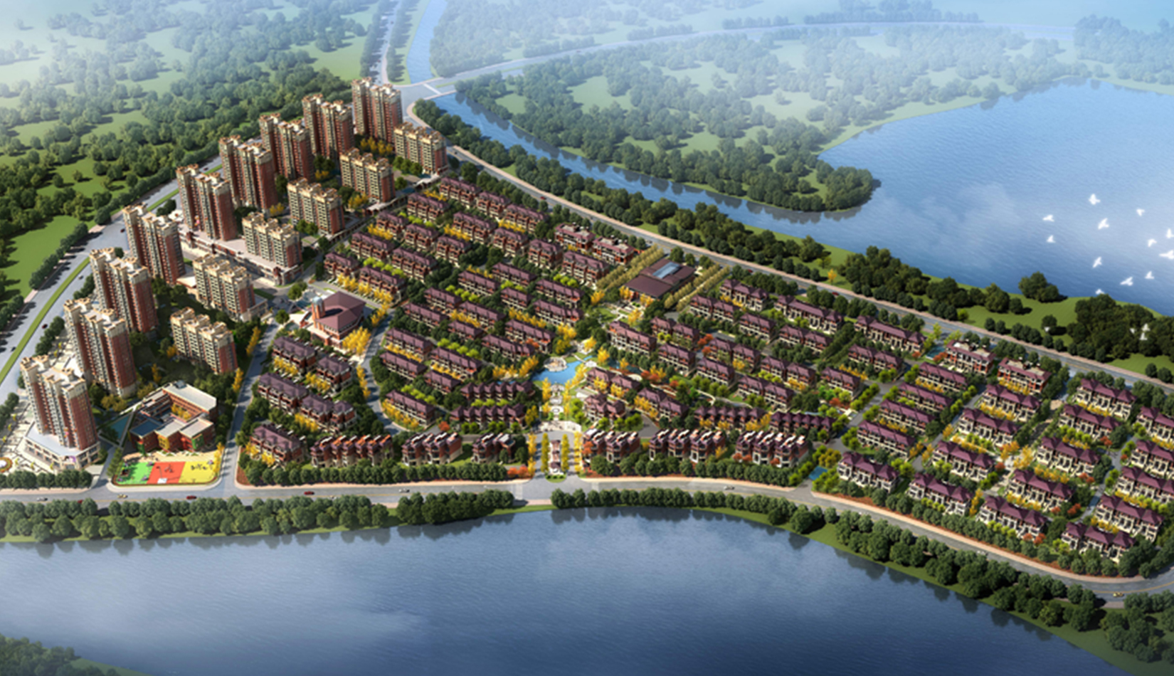 鄰水的景觀條件,合理布局高層與低密度住宅,并將公用空間、半公共空間與半私密空間、私密空間的巧妙搭配,融入到自·然環(huán)境之中,打造了各個(gè)不同特色的景觀節(jié)點(diǎn)。