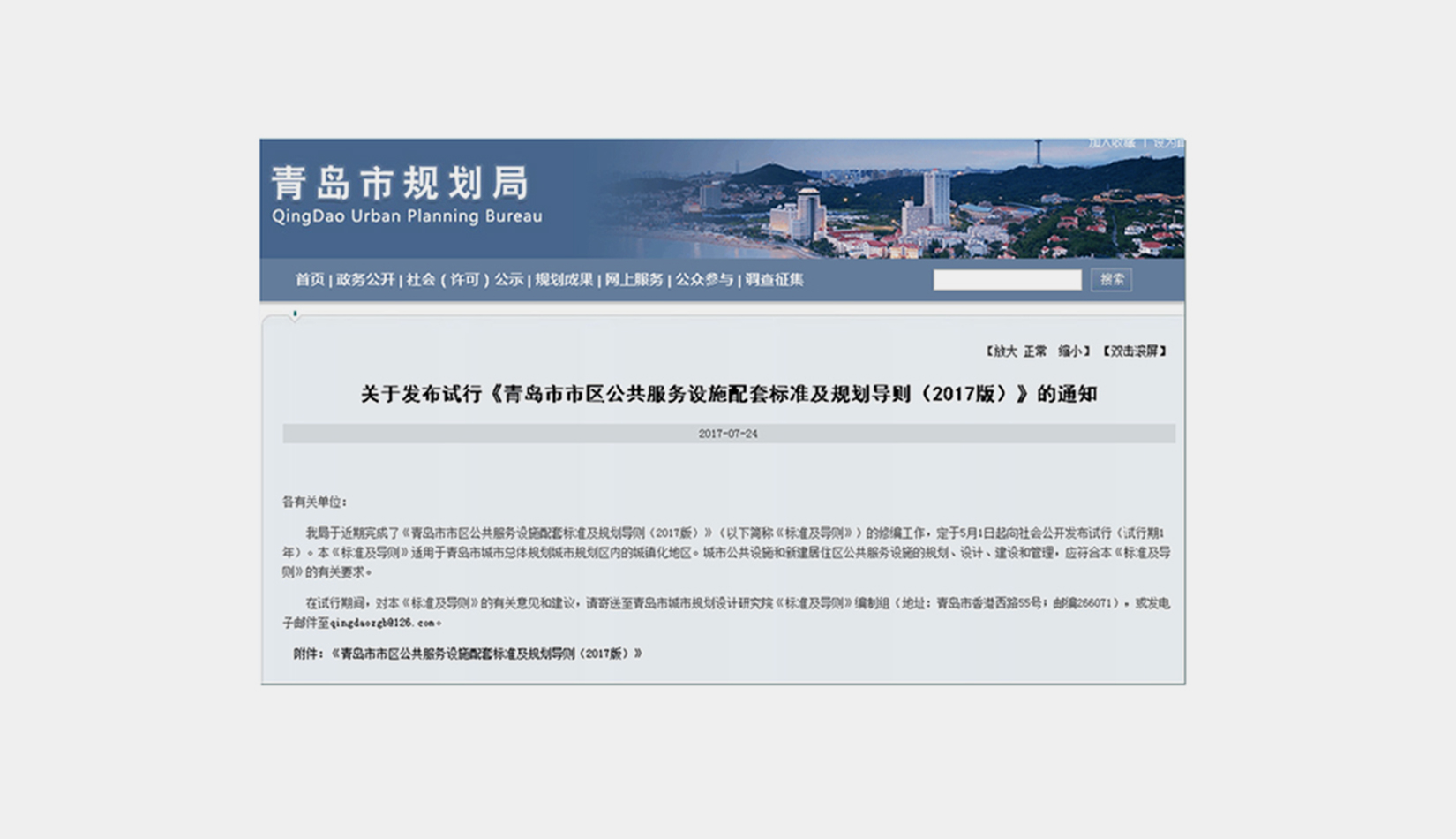 2017 年5 月1 日起向社會公開發(fā)布試行,成為青島市中心城區(qū)81片控制性詳細(xì)規(guī)劃、修建性詳細(xì)規(guī)劃公共服務(wù)設(shè)施規(guī)劃的依據(jù)。