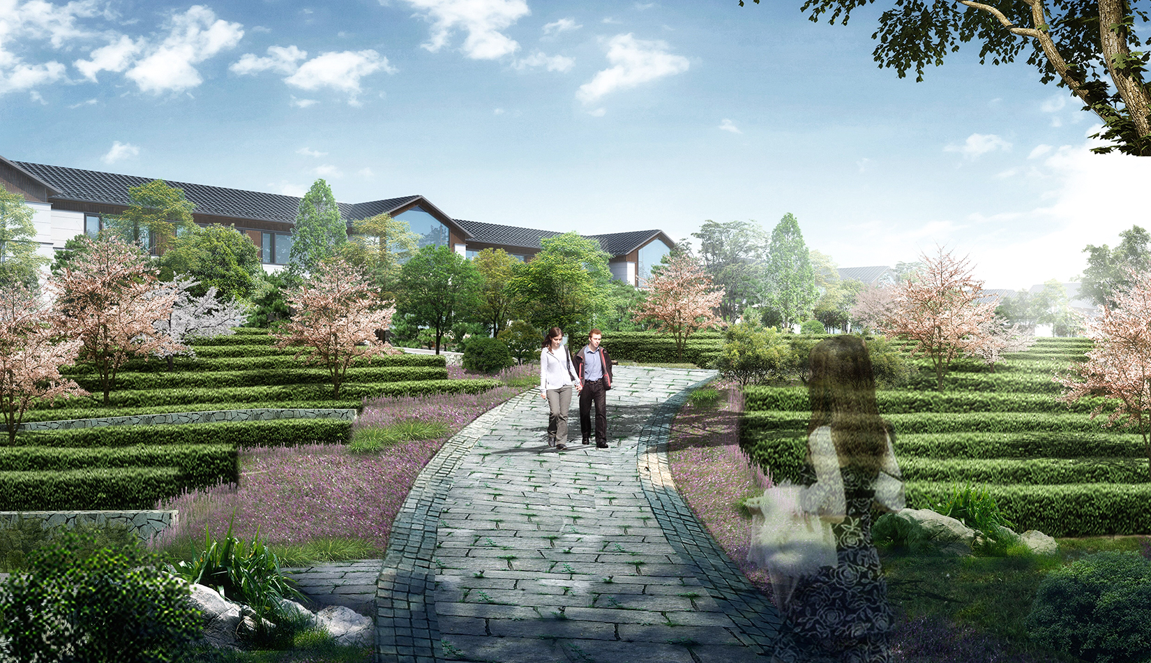 以“鄉(xiāng)村振興” 為背景,以“藏馬山居生活”為目標核心,項目把東方田園與住區(qū)生活融為一體、貫穿自然生態(tài)、海綿城市的設計理念。景觀設計挖掘藏馬山的特色文化,延續(xù)當?shù)鼐G色生態(tài)、山野趣味的自然風貌,通過場景化的展示,融入到景觀設計中,打造特點鮮明、各有特色的入口體驗、商業(yè)街區(qū)、山居生活三大板塊。