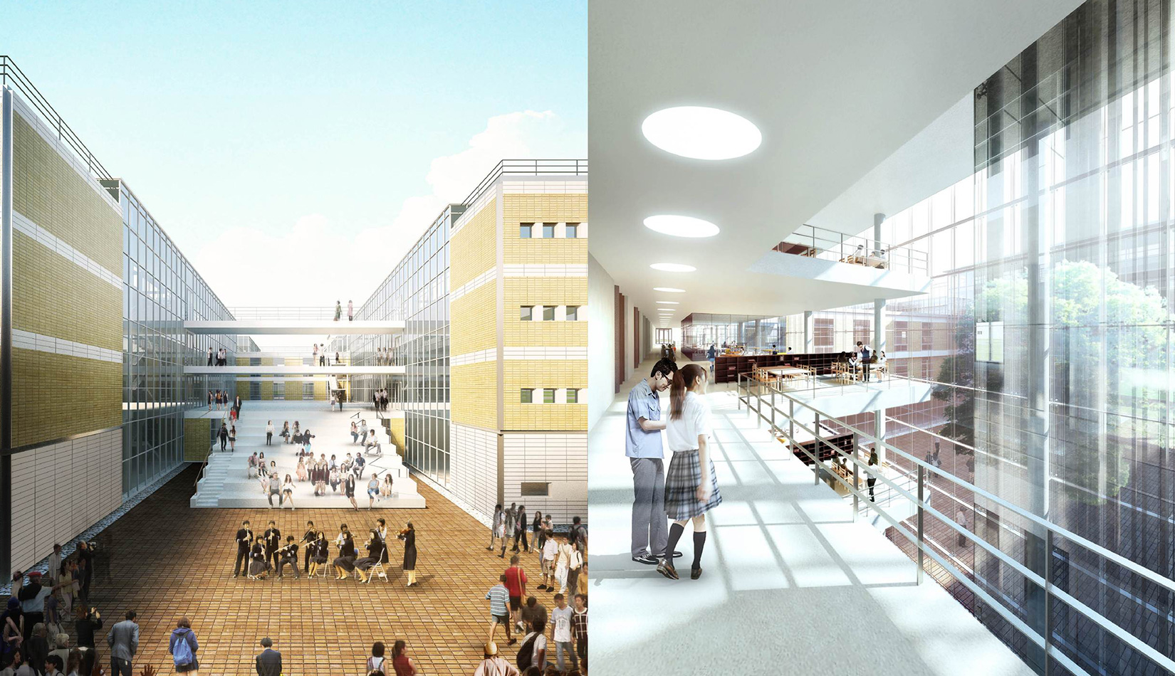 從基地及周邊地區(qū)的城市環(huán)境出發(fā),探索建筑在城市肌理、功能分區(qū)、教育建筑形象等方面的形態(tài)生成因素,力求創(chuàng)造一個(gè)鮮明個(gè)性、現(xiàn)代、高效、體現(xiàn)教育建筑特色的城市建筑形象,為整個(gè)地域帶來(lái)嶄新的城市肌理。