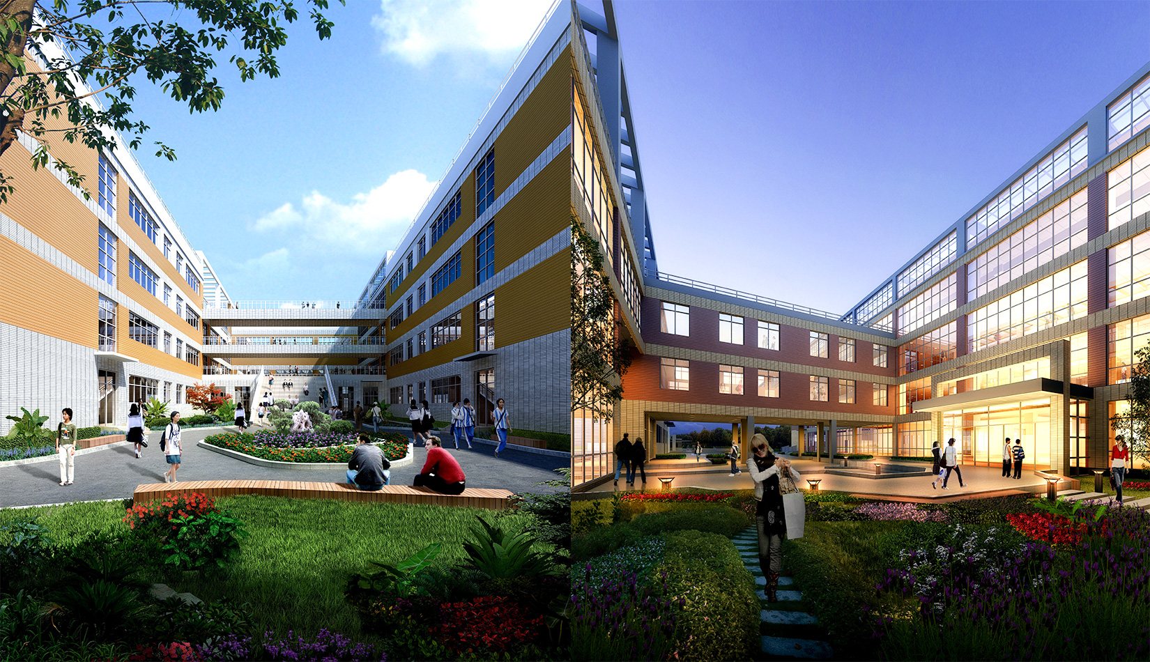通過(guò)對(duì)功能、流線(xiàn)的科學(xué)整合與單體建筑的精心設(shè)計(jì),運(yùn)用現(xiàn)代的建筑語(yǔ)言營(yíng)造富有強(qiáng)烈時(shí)代感的校園環(huán)境,并不斷探索開(kāi)放、和諧、人文的校園設(shè)計(jì)策略,使建筑體現(xiàn)時(shí)代特征。