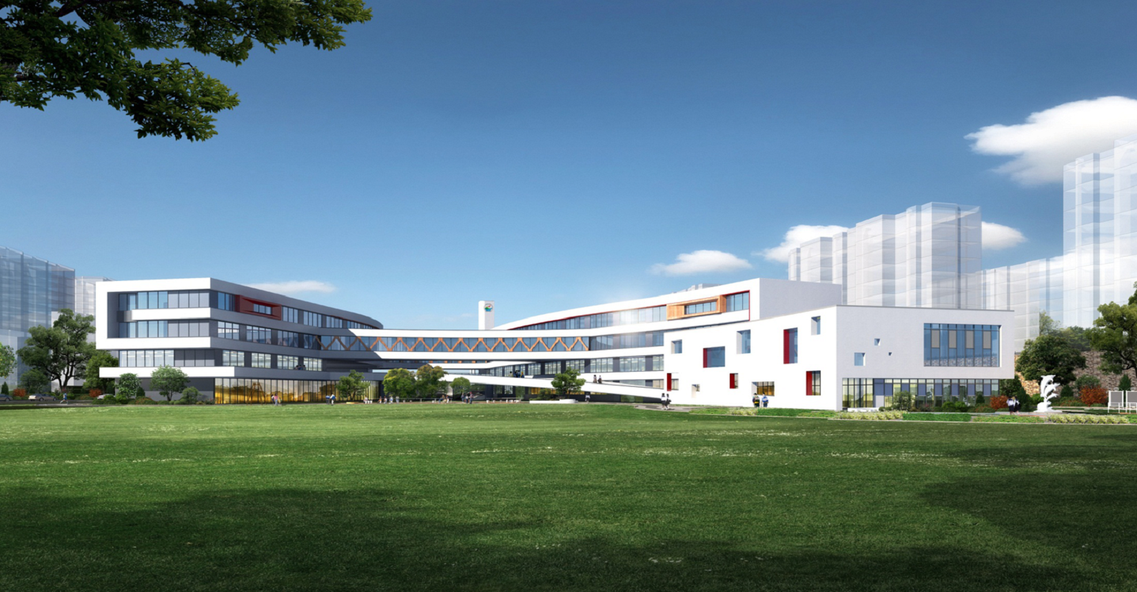 校園規(guī)劃采用曲線手法,營造流水姿態(tài),將東側(cè)山脈與西側(cè)河流連接在一起。設(shè)計現(xiàn)代化“山水”校園,使學(xué)生在自然中成長。營造活水發(fā)源的“源頭”意境,寓意教育為人類文化長河的源頭,呼應(yīng)學(xué)?!霸搭^”文化。曲線舒展的形體,整體采用白色色調(diào),局部以紅黃色進行點綴,風(fēng)格純潔又不失活潑。