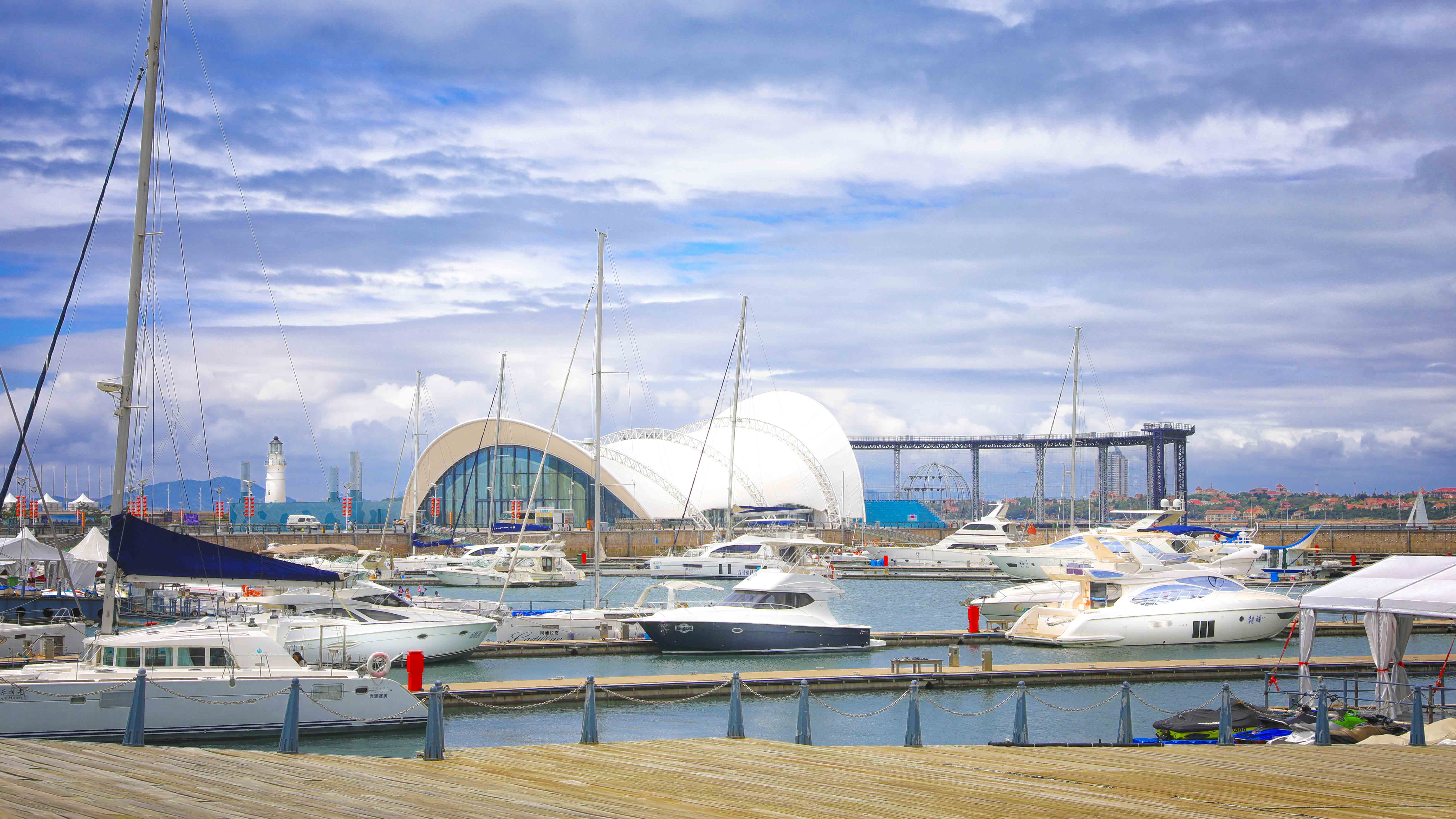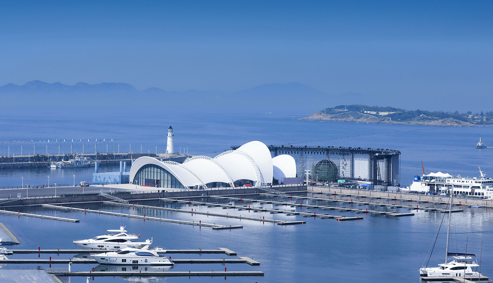 本項目在保留原有建筑主體結(jié)構(gòu)的基礎(chǔ)上,結(jié)合本次會議活動的相關(guān)需求,對其規(guī)模、形象、功能進行改造提升。主題材料采用輕盈的鋼結(jié)構(gòu)與膜結(jié)構(gòu),造型宛如海浪中靈動的風(fēng)帆,彰顯青島這座海洋名稱、帆船之都的獨特魅力。